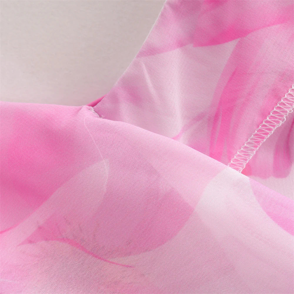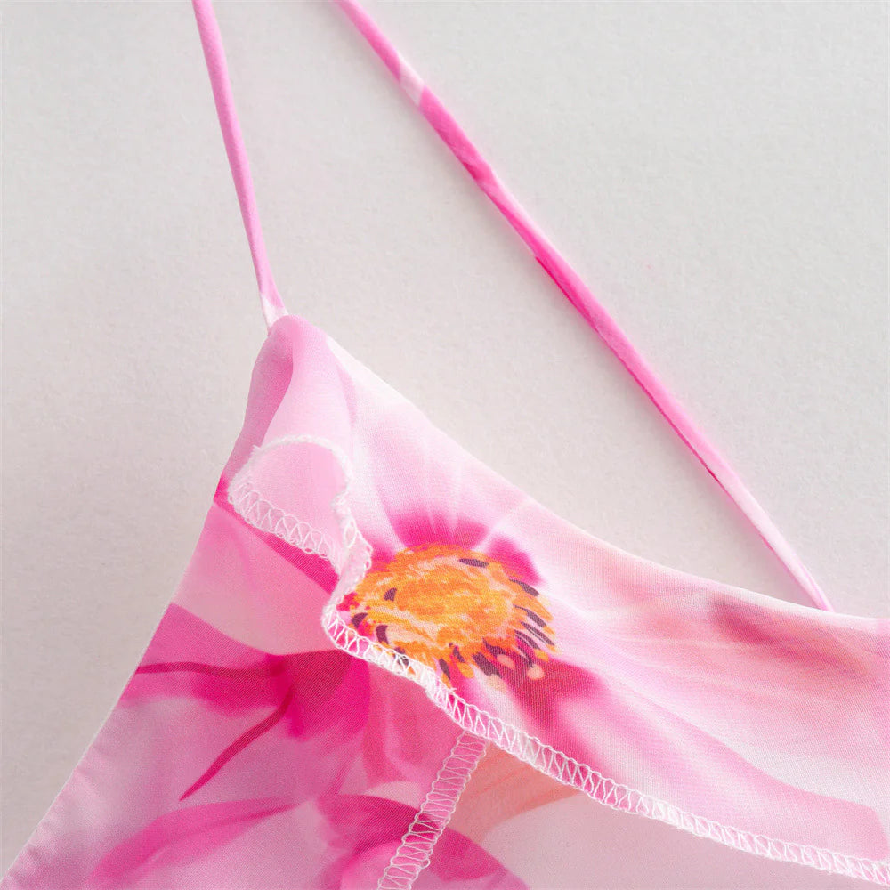 - Eye-Catching Design: Features a striking flower print with an irregular hemline and playful tassel details.