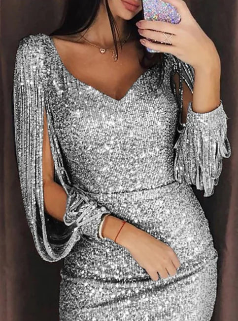 Whether you're dressing up for a special occasion or looking for a chic everyday outfit, this dress is versatile enough to meet all your fashion needs. Available in stunning colors like Golden, Silvery, and Black, you can choose the perfect shade to match your unique style.