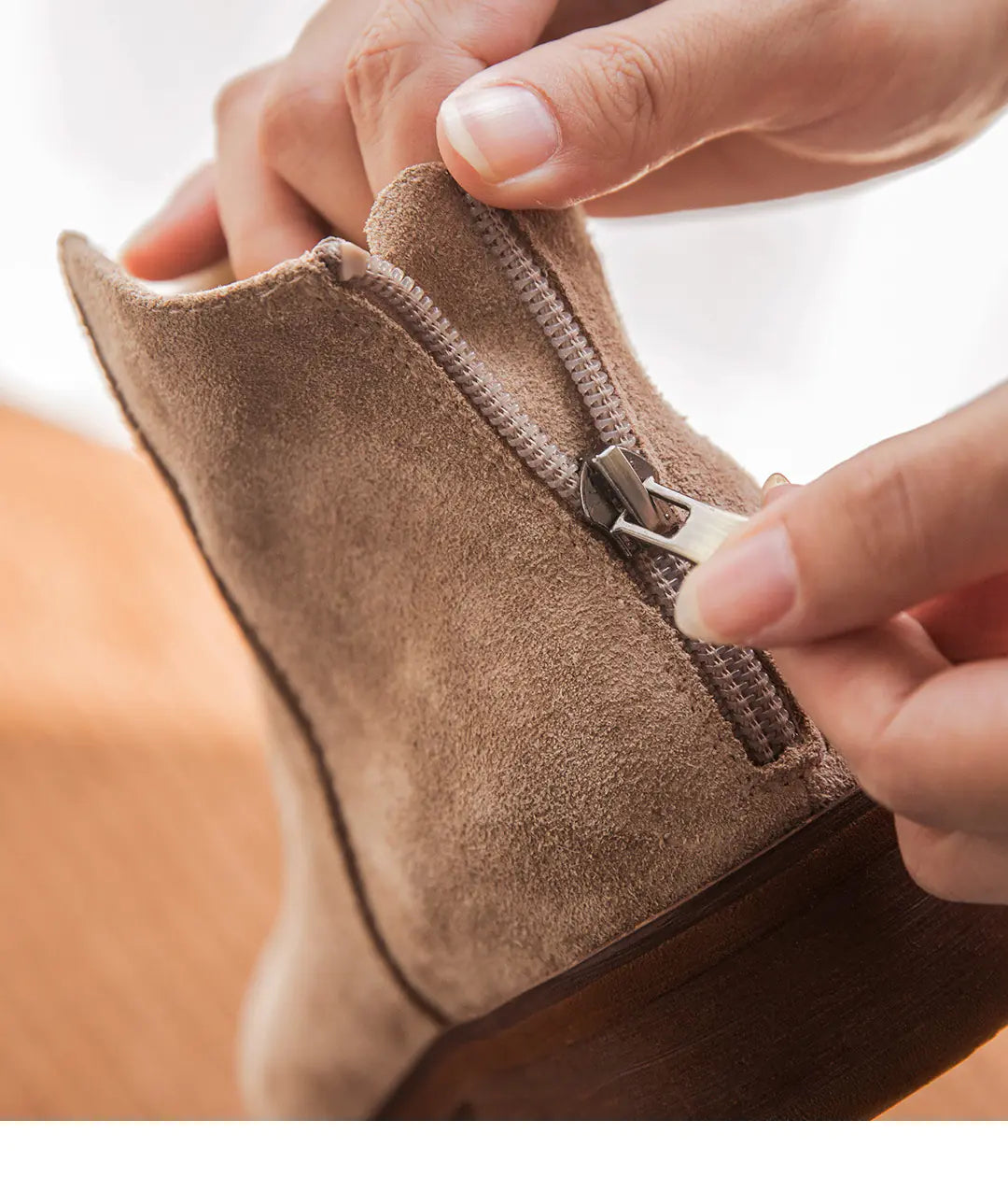 Step into elegance and comfort with our stunning genuine leather women's boots. Designed for the modern woman, these boots feature a chic round toe shape and a sturdy thick heel that provides just the right amount of height, with a medium heel measuring between 3-5CM.