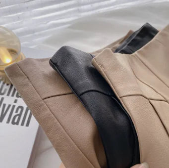 Crafted from high-quality PU leather, these pants boast a chic and fashion casual style that speaks to your unique personality. Available in three versatile colors: Khaki, Coffee, and Black, you can effortlessly mix and match with your favorite tops and accessories.