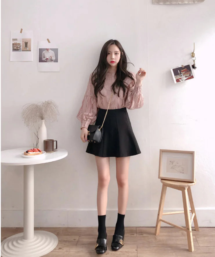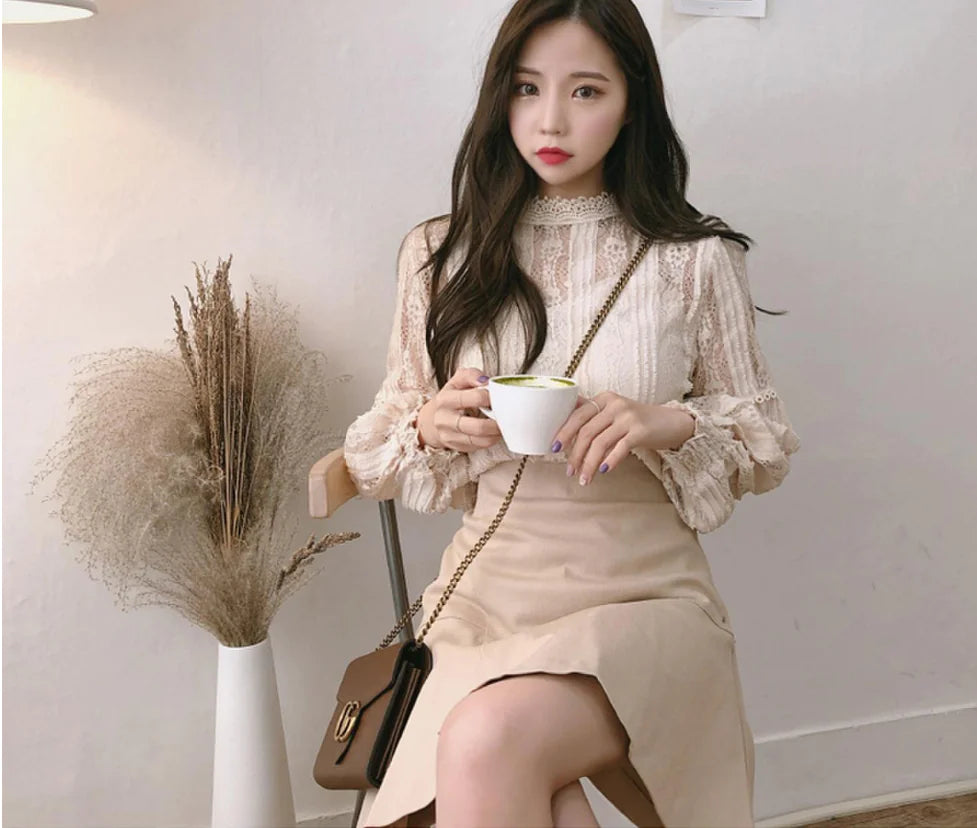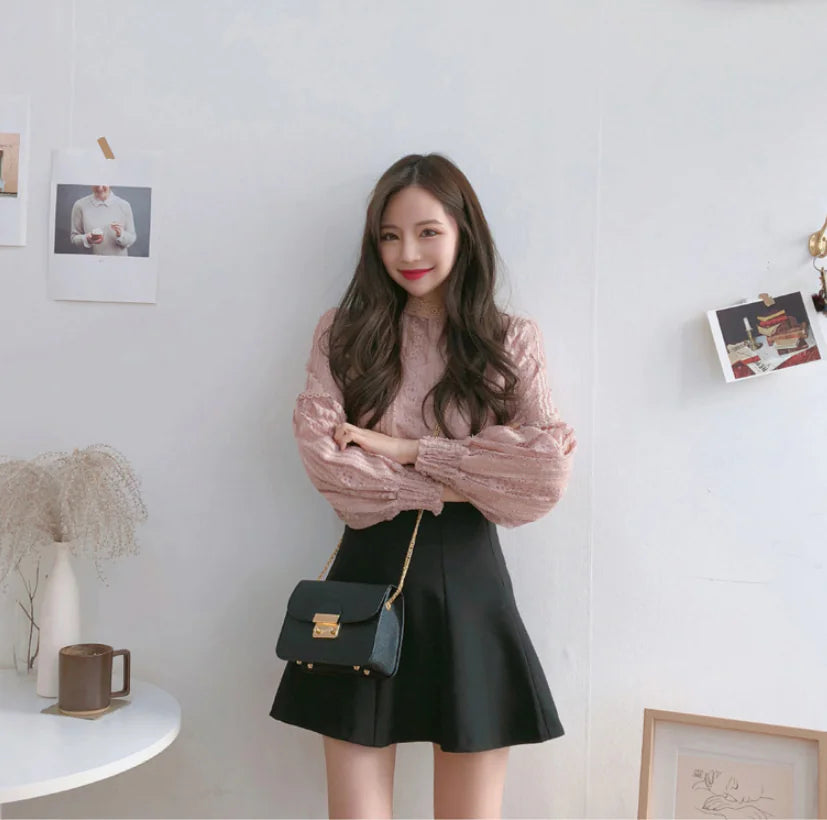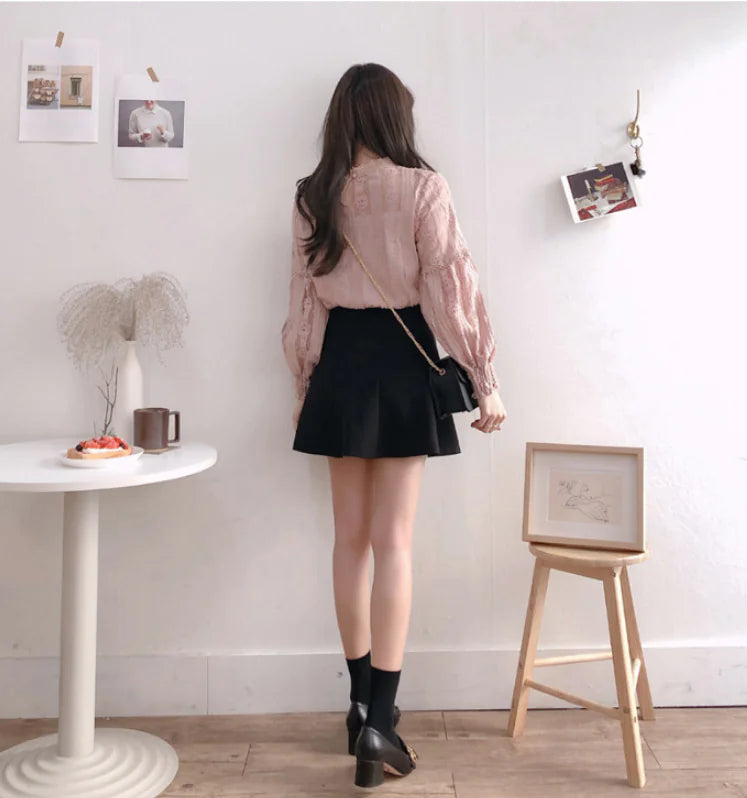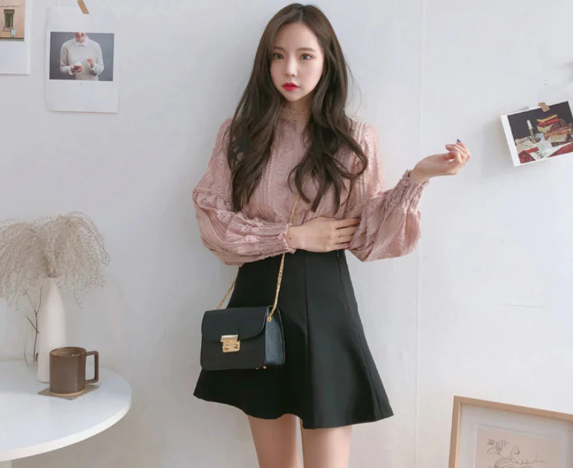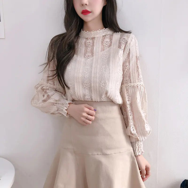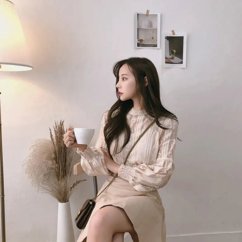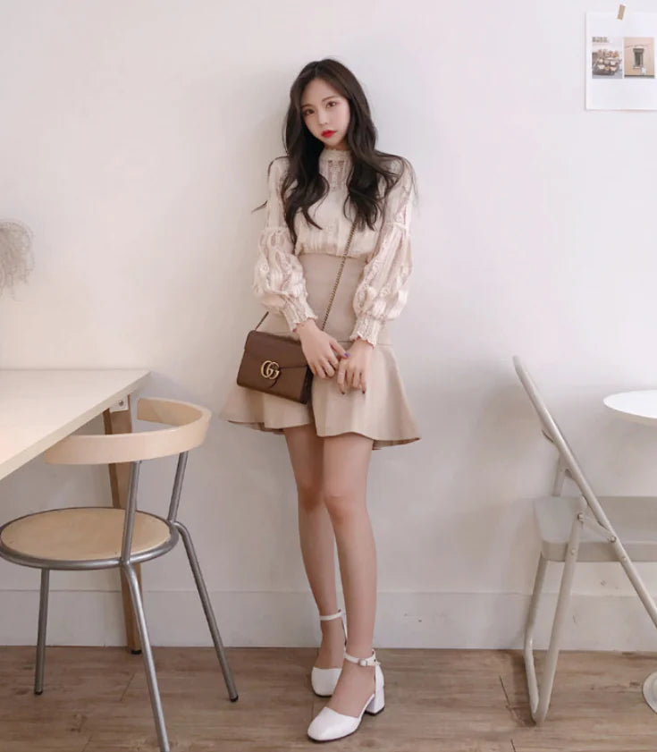Lace Top with Lantern Sleeves - Sweet Two-Piece Look