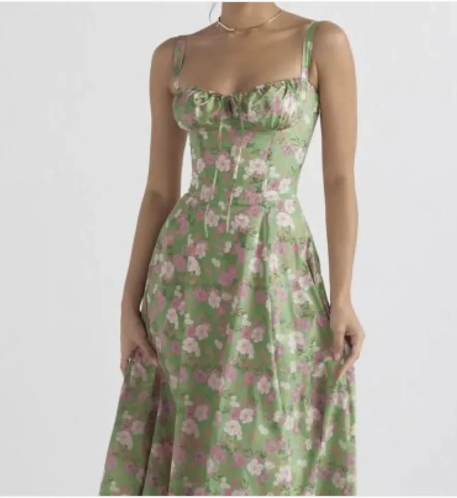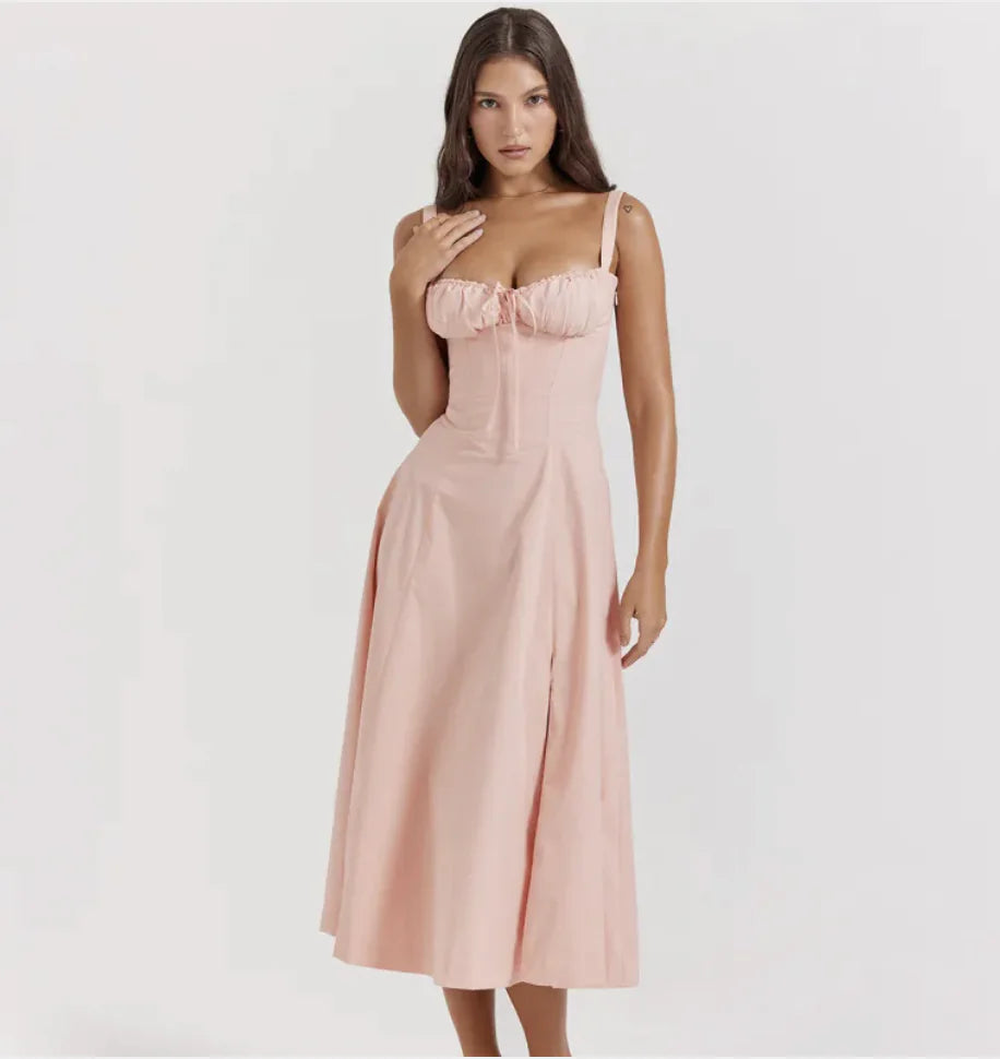 Elegant and stylish sling back dress with a high waist and A-line skirt. Perfect for a chic, retro look with a long skirt and sleeveless design.