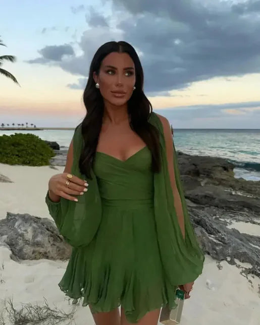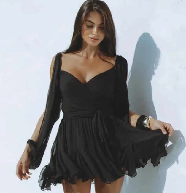 Turn heads with this stylish off-shoulder dress featuring dramatic hollow lantern sleeves and a flattering V-neckline. The flowing silhouette and soft fabric make it perfect for both daytime outings and evening occasions. A bold mix of romance and elegance, ideal for fashion-forward women.